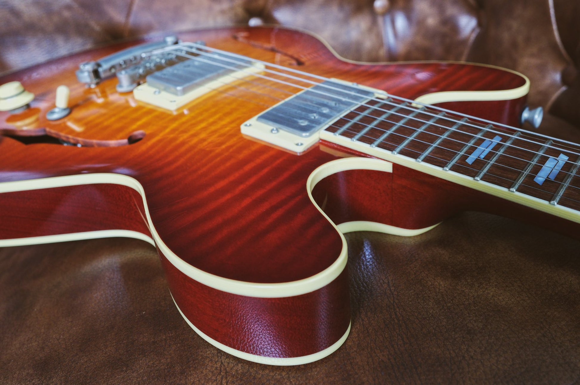 At the heart of its voice lies an elite upgrade: a set of ThroBak SLE-101 humbuckers, delivering a harmonically complex, 1950s-spec growl that is as articulate as it is muscular. Complete with its original hardshell case and full documentation, this I-35 Deluxe is a definitive statement piece for the player who demands the absolute peak of semi-hollow performance.
